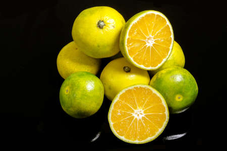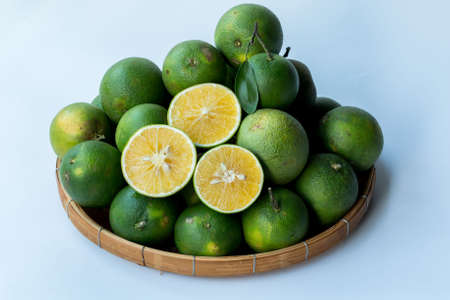 Green oranges and sliced Health fruit for clean food. High vitamin C.