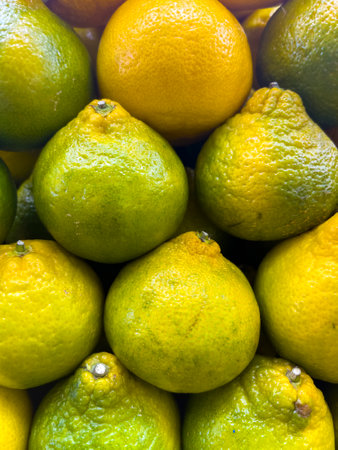 pile of green and yellow tangerines as a background