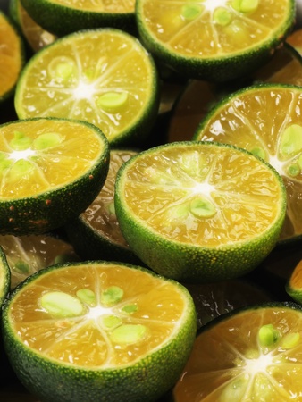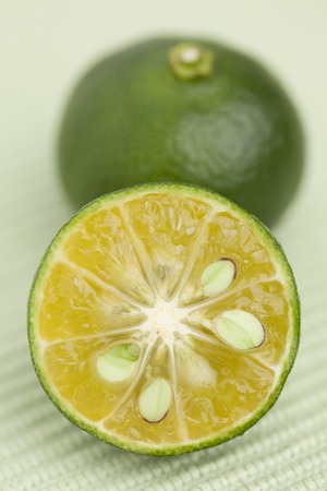 Fresh limes, cross section showing the limes skin.