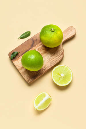 Fresh limes on color background