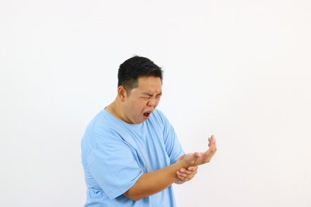 Man Gripping Wrist in very bad Pain