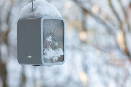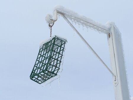 Metal bird feeder covered of ice after an ice storm-Stock Photos