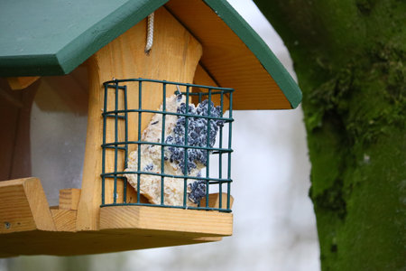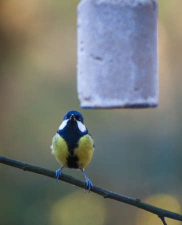The care for wild birds in winter, feed birds in cold weather. Little garden bird Great tit Parus major in nature