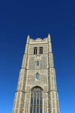 West tower of Eye parish church of Saint Peter and Saint Paul in Suffolk and blue sky with no cloud in the background.