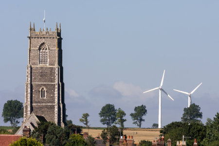 New windmills and old church at Winterton-on-Sea