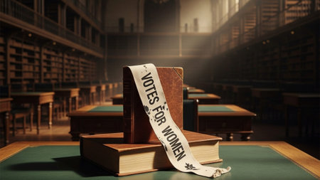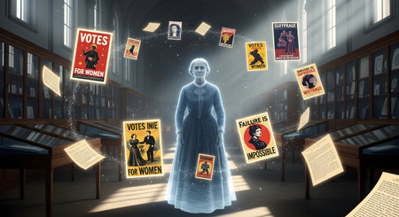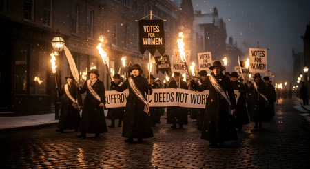 Suffragette March Women's Rights Group Purple White Green Organised Rally Demonstration Abstract Generative AI Tools Technology illustration