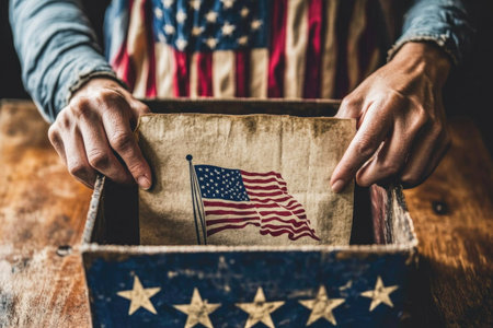 Patriotic Voter Holding a Marked Ballot for Election Day with American Flag and Stars.
