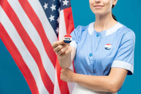 Vote Buttons Badge Isolated on White Background, 2020 US elections, panorama, copy space