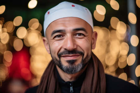 Portrait of a muslim man wearing a headscarf and smiling