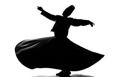 Whirling dervish dancing in traditional ottoman clothing inside a historical building, showcasing Turkish culture and heritage