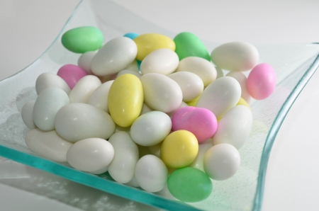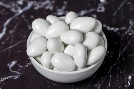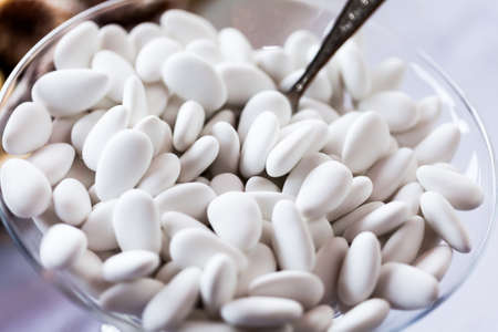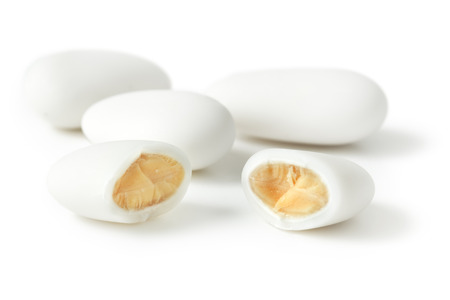 white dragee candy with almonds