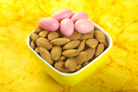 Candies almonds in sugar colored glaze