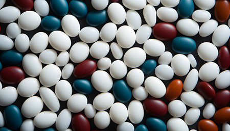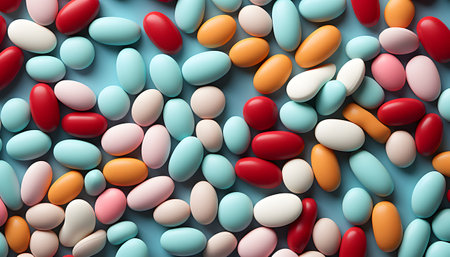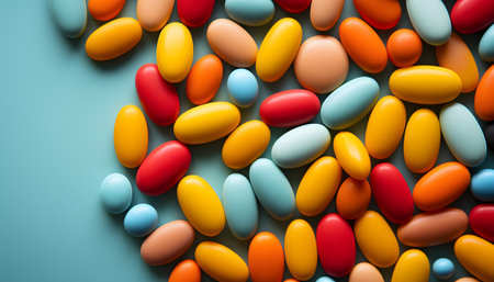 Assorted multicolored jelly beans with copyspace
