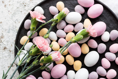 sugared almond sweet candy pastel colorful on soft pink