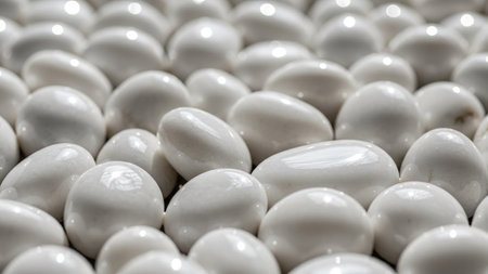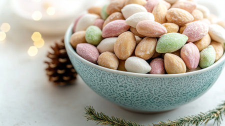 Close-up of sugar-coated almonds with sparkling sugar crystals, a sweet and delightful treat
