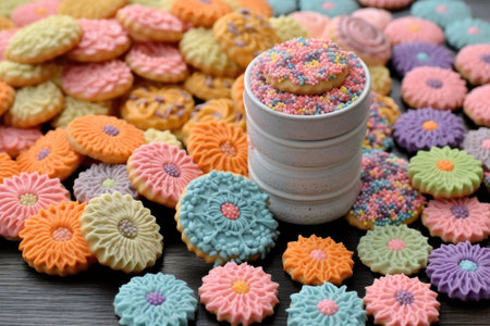 decorative icing and sprinkles for biscuit decorating, created with generative ai