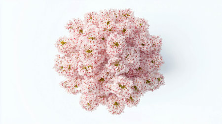Elegant cherry blossom dessert display with white mousse and pink flower decoration. That the image is generated using AI.