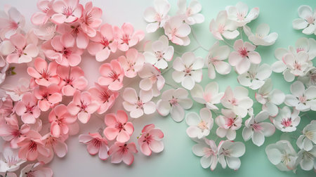 A delicate gradient highlighting springtime cherry blossoms in shades of pink and mint green