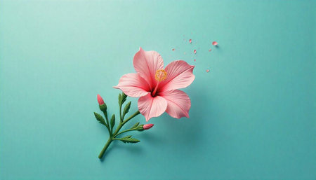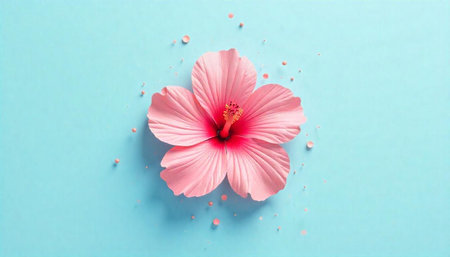 Pastel Hibiscus Blossom with Decorative Elements on Light Blue Background