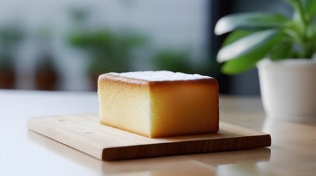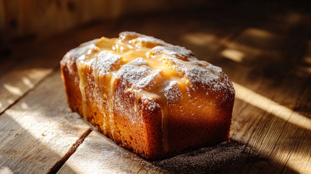 AI Generated. Delicious Loaf Cake with Powdered Sugar on Rustic Wooden Board