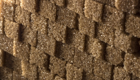 brown sugar cubes on a gray background. Macro