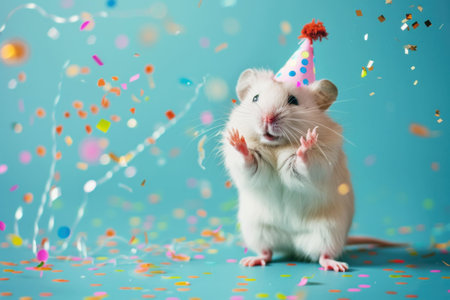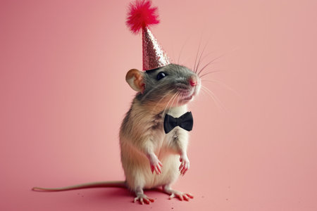 Festive Rat Ready to Party with Shiny Red Hat and Bow