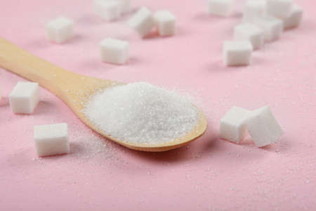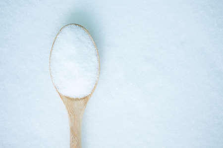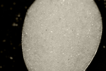 Sugar on a spoon in sugar background