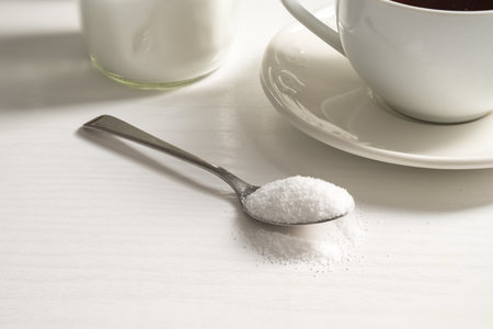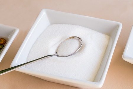 Spoon of sweetener. Sugar alternative, food and nutrition
