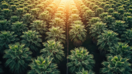 Aerial view of oil palm plantation in Bali island, Indonesia