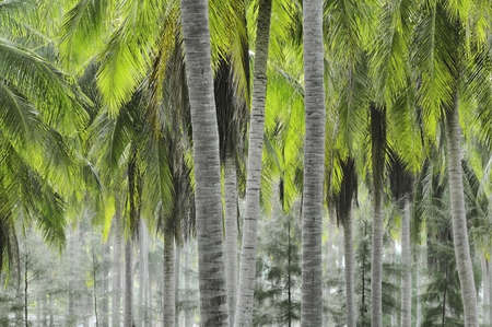 Beautiful view of coconut trees in the morning mist, Sri Lanka