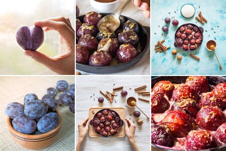 Ripe plums in the garden on a summer day. The autumn harvest.