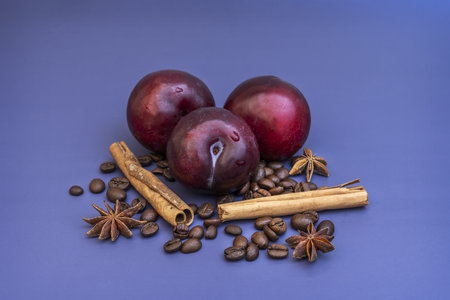 Juicy Plums on Vibrant Blue Background, Freshness in Every Slice