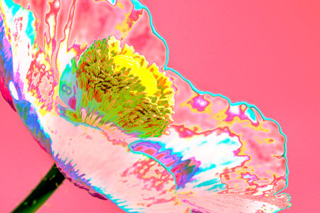 Beautiful single coral poppy flower head and petals. Bright poppy flower. Close up of delicate flower for your design.