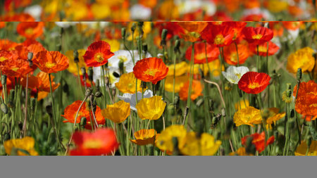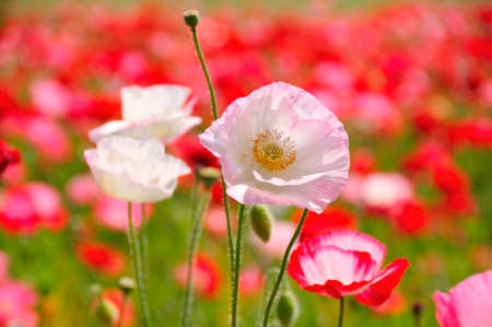 beautiful poppy flower field on a sunny summer day