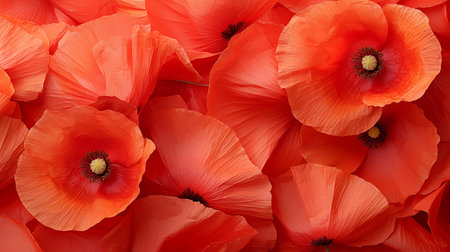 Red poppies background. Red poppies texture. Top view.