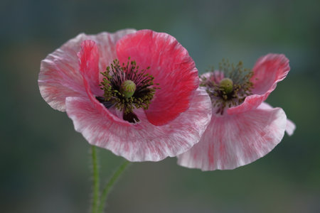 Poppy flowers isolated on green blur background.