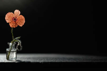 Wild poppy flower at sunset. Symbol of Remembrance Day.