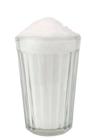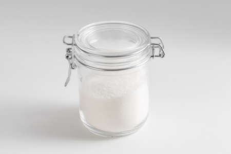 A jar of sugar on a white background.