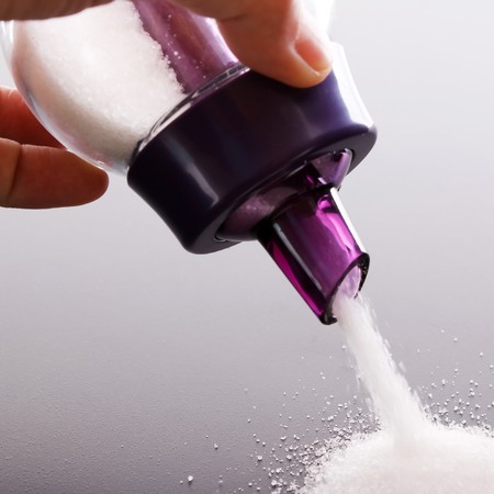 White sugar spilled from the jar