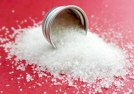 crystal sugar on red background