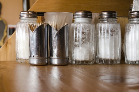 salt and toothpicks in a restaurant