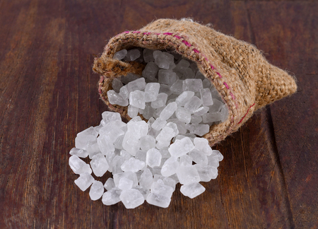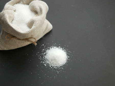 Sugar bag on wooden background, white and brown sugar for food and sweets dessert candy heap of sweet sugar crystalline granulated