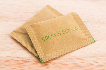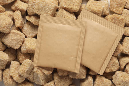 Package of Raw Organic Brown Sugar Cube in Craft Paper Ready to Eat. Food Product.