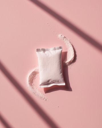 AI Generated. Single Pink Sachet of Powder on Pink Background