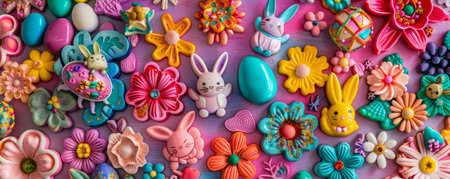 Flat lay. Easter sugar cookies decorated with pastel colors of royal icing.
