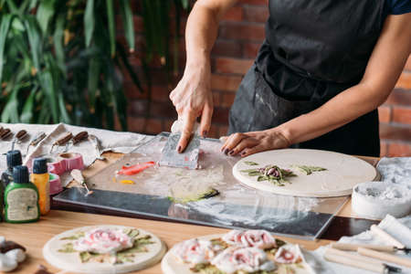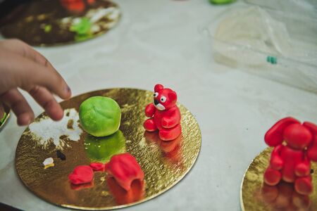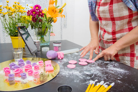 Making decoration for dessert from sugar mastic