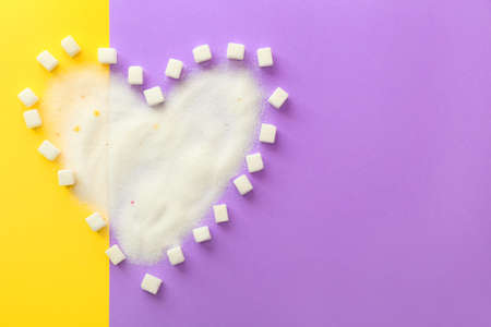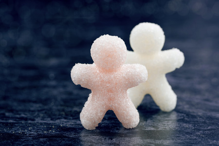Sugar on a dark background. Diet, sweet life. Smiley face.