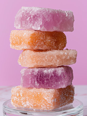 Colorful marmalade and sugar background closeup. Sweet dessert