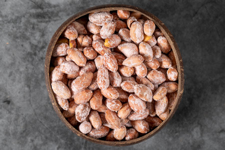 roasted almond nuts in a bowl on table