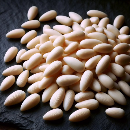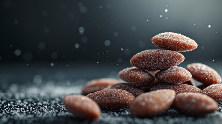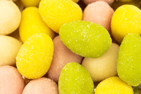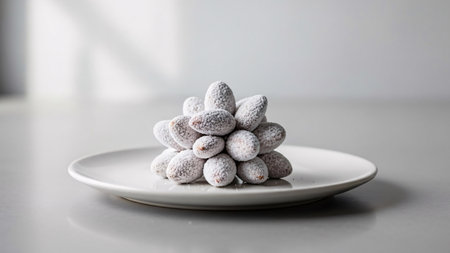 Close-up of sugar-coated almonds with sparkling sugar crystals, a sweet and delightful treat